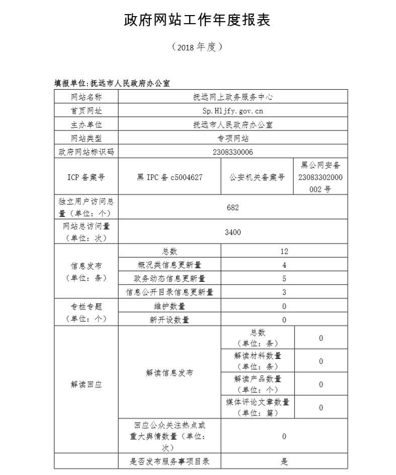 抚远市网上政务服务中心2018年政府网站工作年度报表