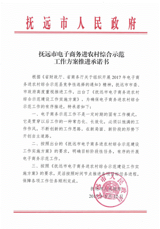 抚远市电子商务进农村综合示范工作方案推进承诺书