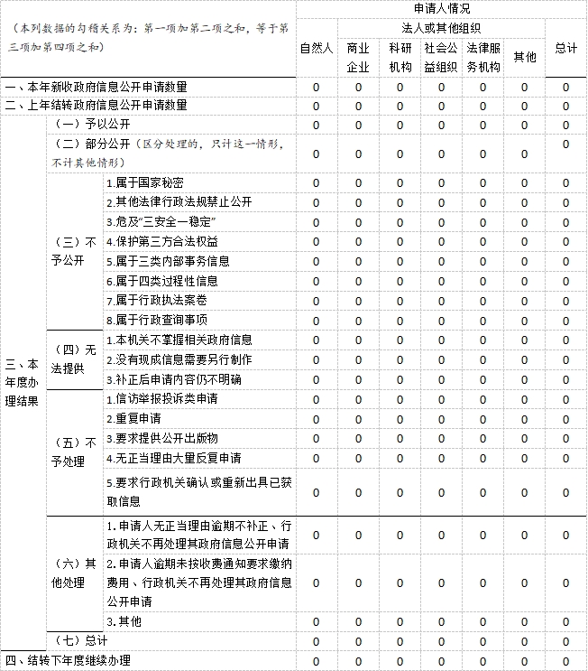 三、收到和处理政府信息公开申请情况