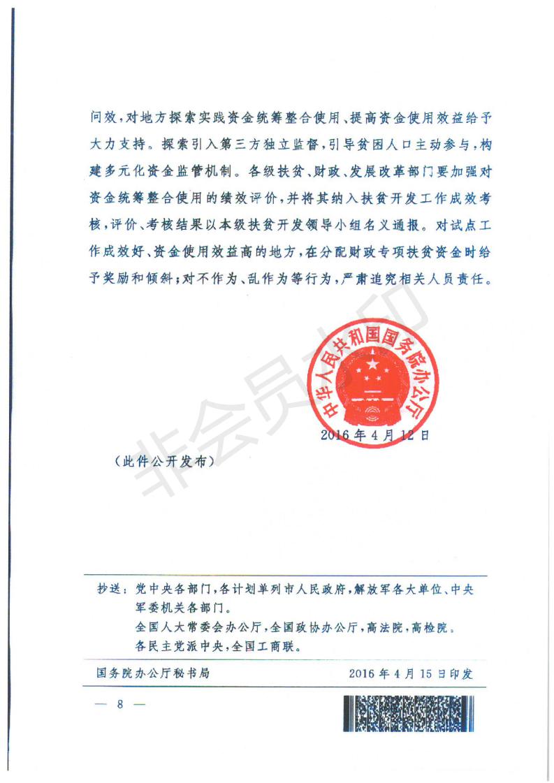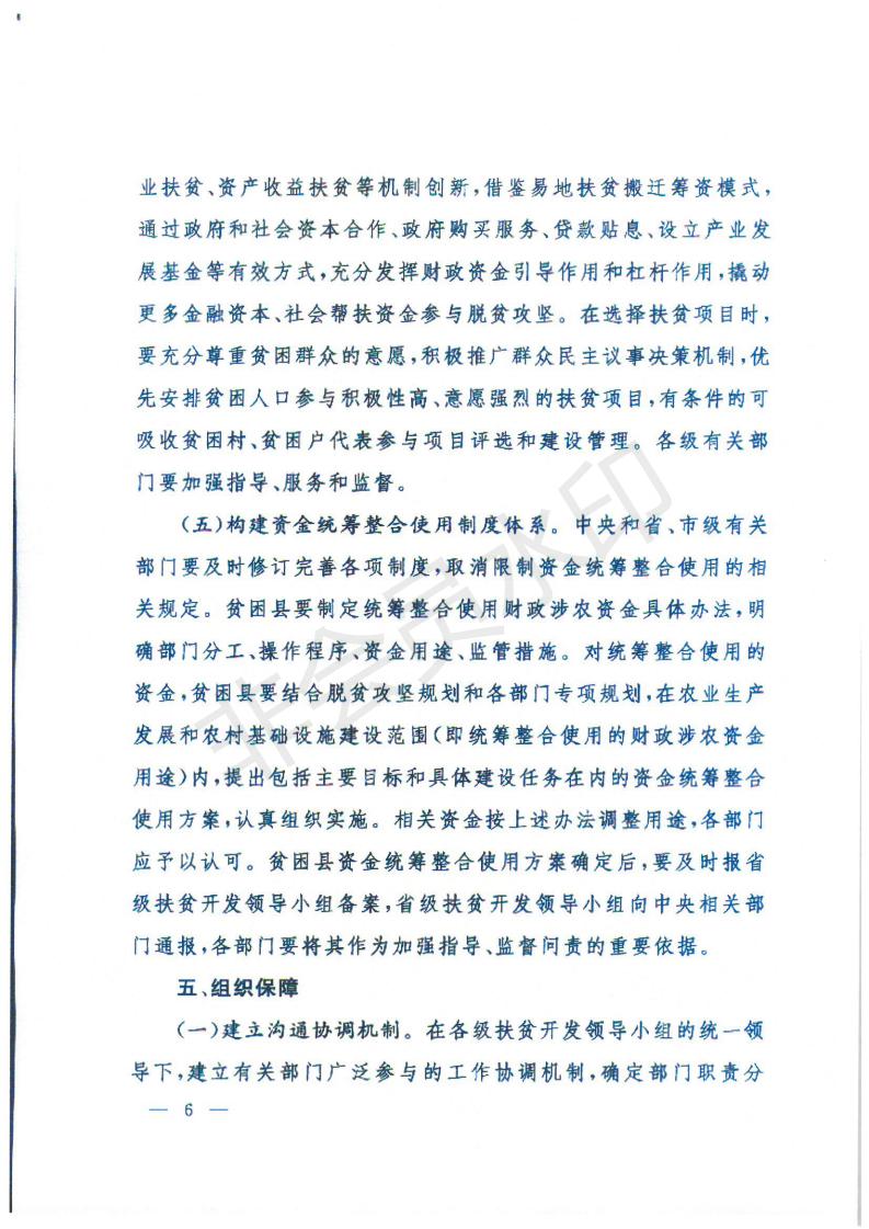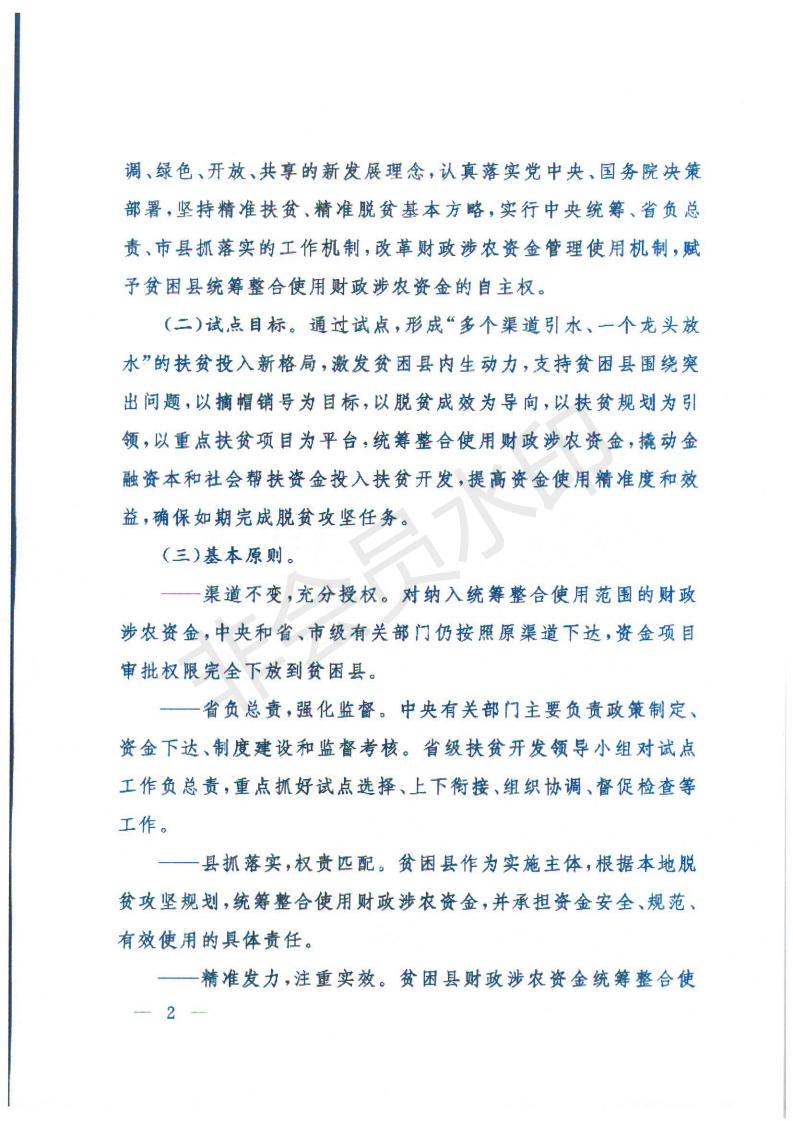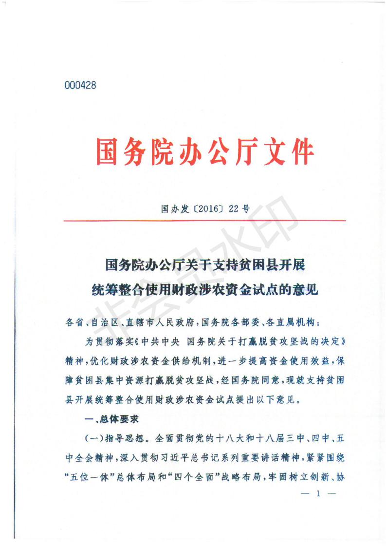 国务院办公厅关于支持贫困县开展统筹整合使用财政涉农资金试点的意见